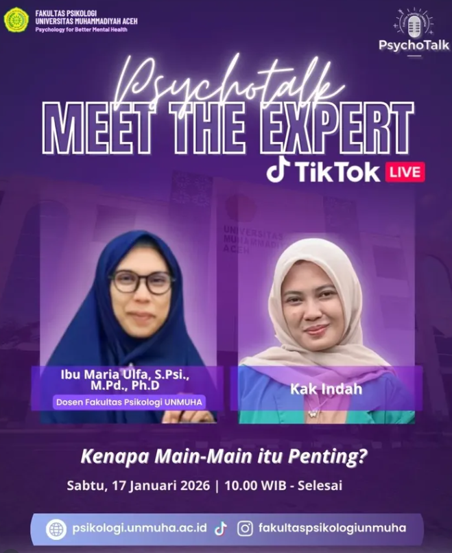 Fakultas Psikologi UNMUHA mempersembahkan PsychoTalk: Meet The Expert dengan tema: ✨ “Kenapa Main-Main itu Penting?” ✨