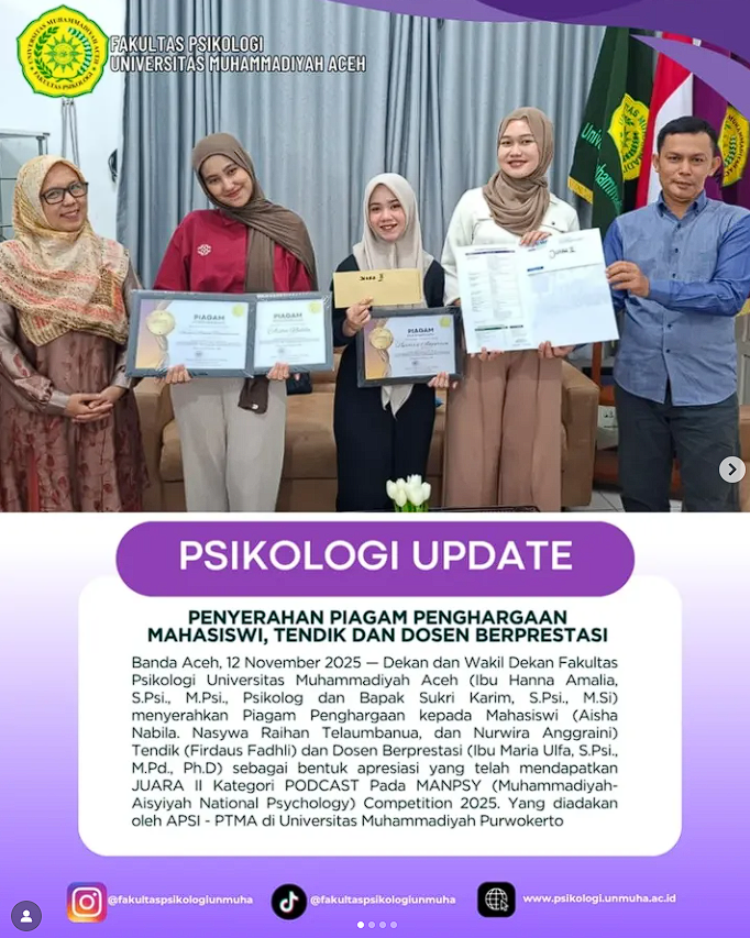 Alhamdulillah, Fakultas Psikologi Universitas Muhammadiyah Aceh kembali menorehkan prestasi!