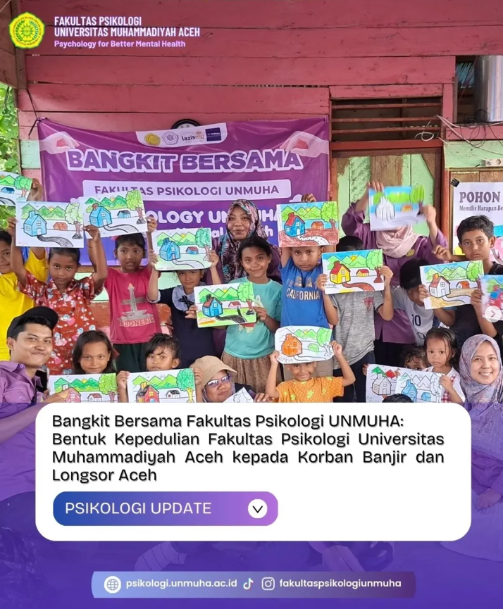 Pidie Jaya, 28 Desember 2025 — Fakultas Psikologi Universitas Muhammadiyah Aceh (UNMUHA) melaksanakan kegiatan layanan psikososial untuk kedua kalinya bagi masyarakat yang terkena bencana. Kegiatan kali ini di lakukan Desa Lhoksandeng, Kabupaten Pidie Jaya, yang merupakan salah satu daerah terisolasi dengan keterbatasan akses layanan sosial dan kesehatan. Kegiatan ini menjadi bagian dari komitmen UNMUHA dalam menjangkau masyarakat di wilayah yang sulit diakses dan minim fasilitas pendukung.